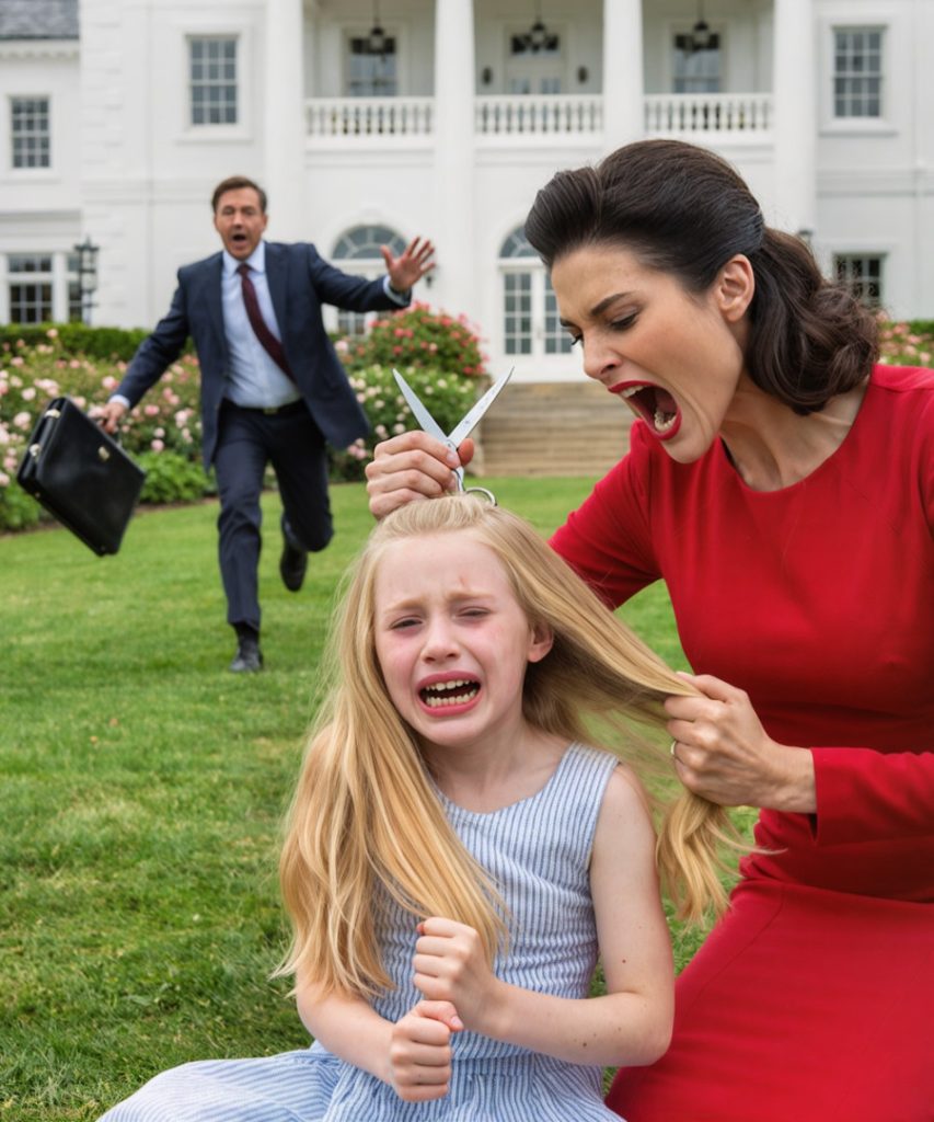 „Proszę, nie obcinaj mi włosów!” Mała dziewczynka błagała macochę, żeby jej nie obcinała. Kilka sekund później przybył jej ojciec-milioner i wszystko się zmieniło.