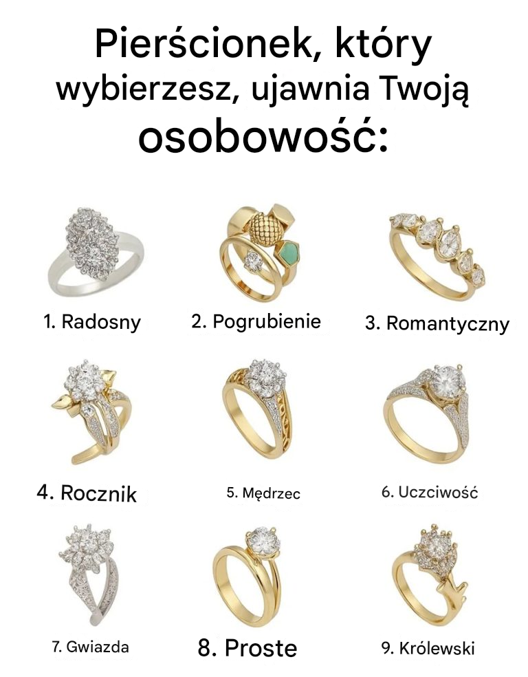 Czy kiedykolwiek zauważyłeś, jak niektóre pierścienie wydają się „dzwonić” do ciebie, jakby już znały twoje najsłodsze sekrety? A jeśli to nie był przypadek? Każdy pierścień opowiada historię – twojego serca, energii i sposobu, w jaki kochasz. Która z tych dziewięciu byłaby twoja?
